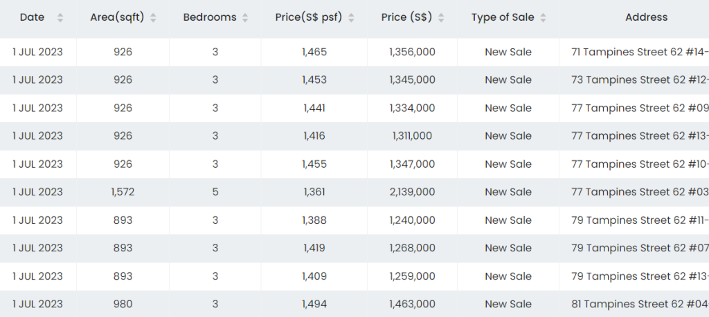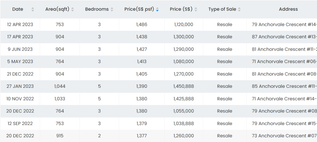 La Fiesta: TOP 2016, Highest PSF for a 3 bedroom 893sqft transacted at $1,634psf.