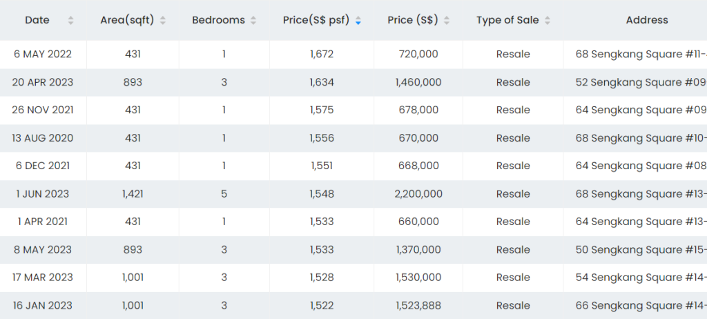 Jewel @ Buangkok: TOP 2017, Highest PSF for a 3 bedroom 1141sqft transacted at $1,630psf.